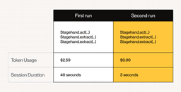 Stagehand now automatically caches results of repeated actions to eliminate redundant LLM calls. When encountering a page structure it's seen before, it serves the cached result instantly. Results in up to 2x faster execution and ~30% cost reduction on repeat workflows. Caching is conservative by default and scoped to your project.